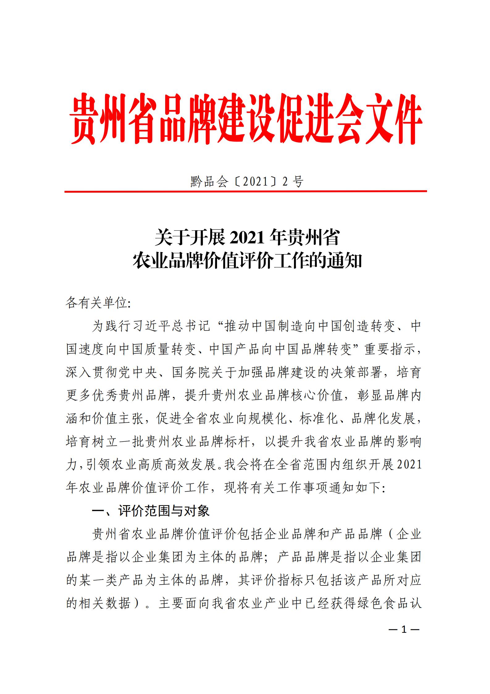 • 关于开展2021年贵州省农业品牌价值评价工作的通知