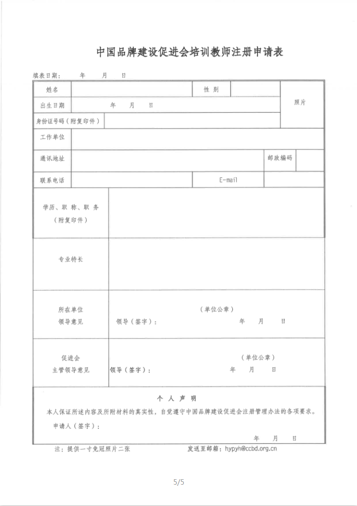 中国品牌建设促进会培训教师注册申请表