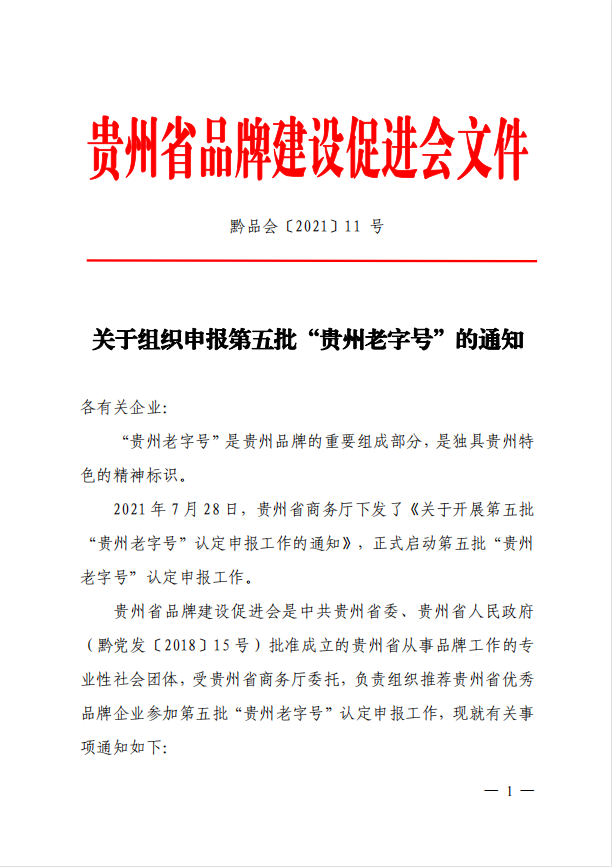 11号 关于组织申报第五批“贵州老字号”的通知