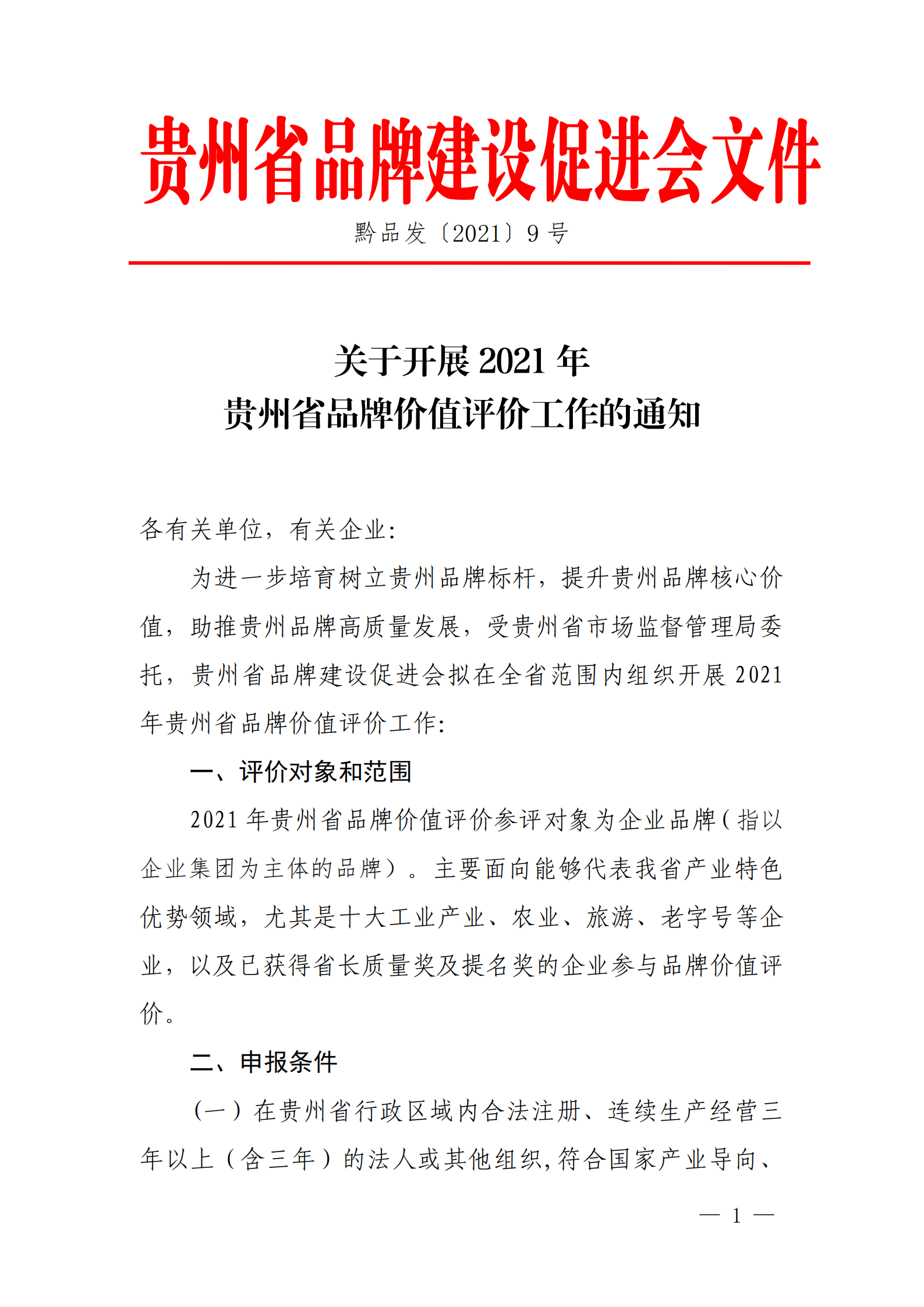 关于开展2021年贵州省品牌价值评价工作的通知