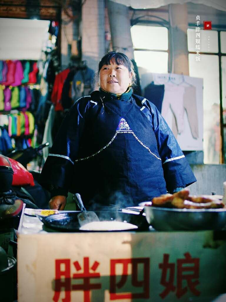 在与贞丰胖四娘陆阿姨交流过程中,老太太是一个非常朴实的人,给到我的感觉很有亲和力,说起她当年摆摊,她没什么文化,又要养家,只能做糯米饭和包棕子,每天凌晨3点就要起床准备,淘米,切肉,包粽子、蒸煮......然后挑到街上出售。所选取的食材都是较好的,做出来味道也好,从10岁开始,就帮母亲一起做的糯米饭和粽子,并得到当地人的认同,这一做就是40多年。向这些能坚守的手工美食传承者致敬。