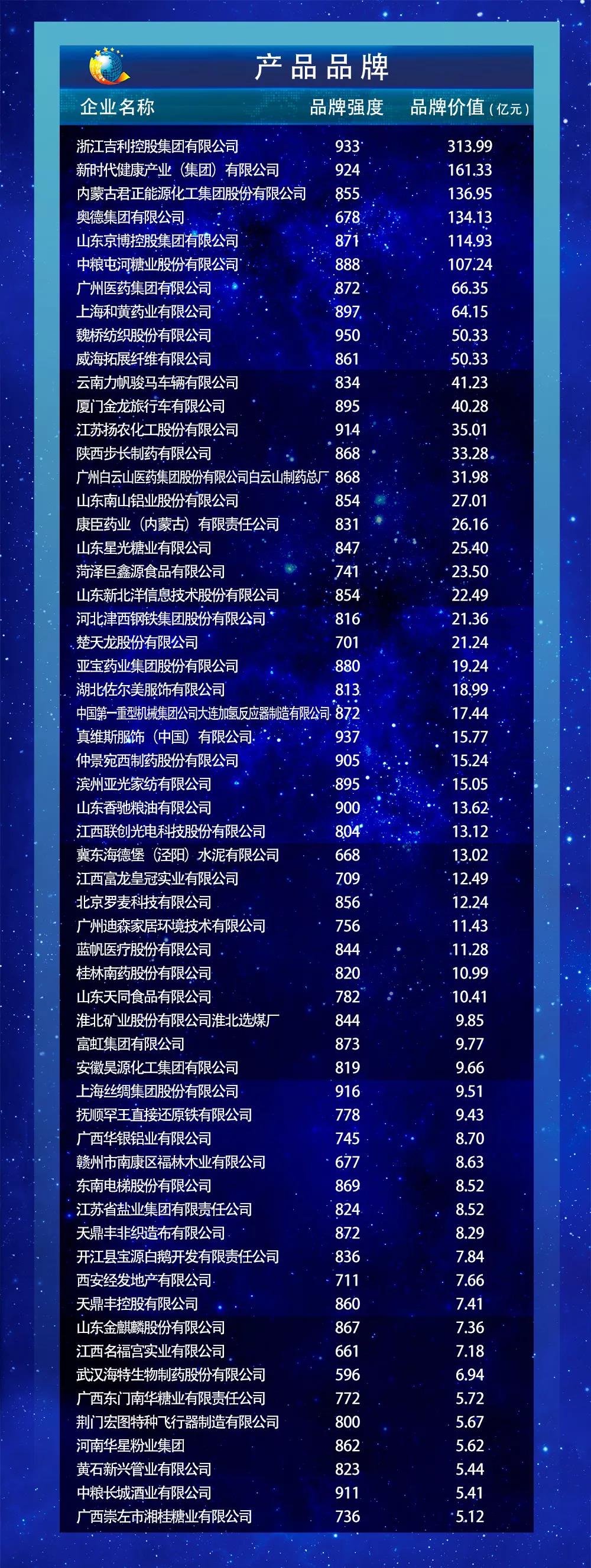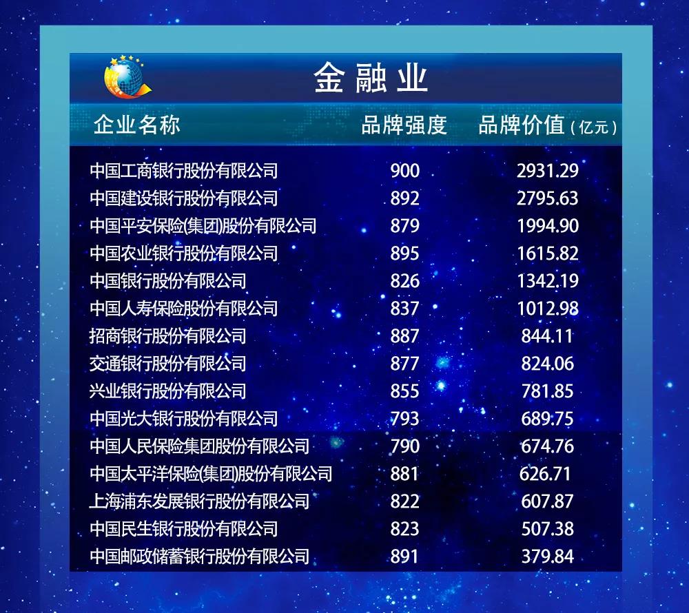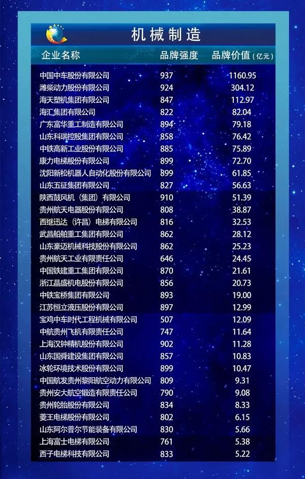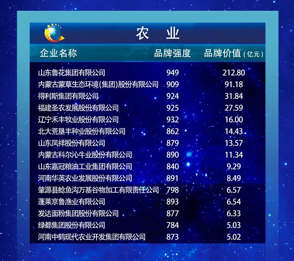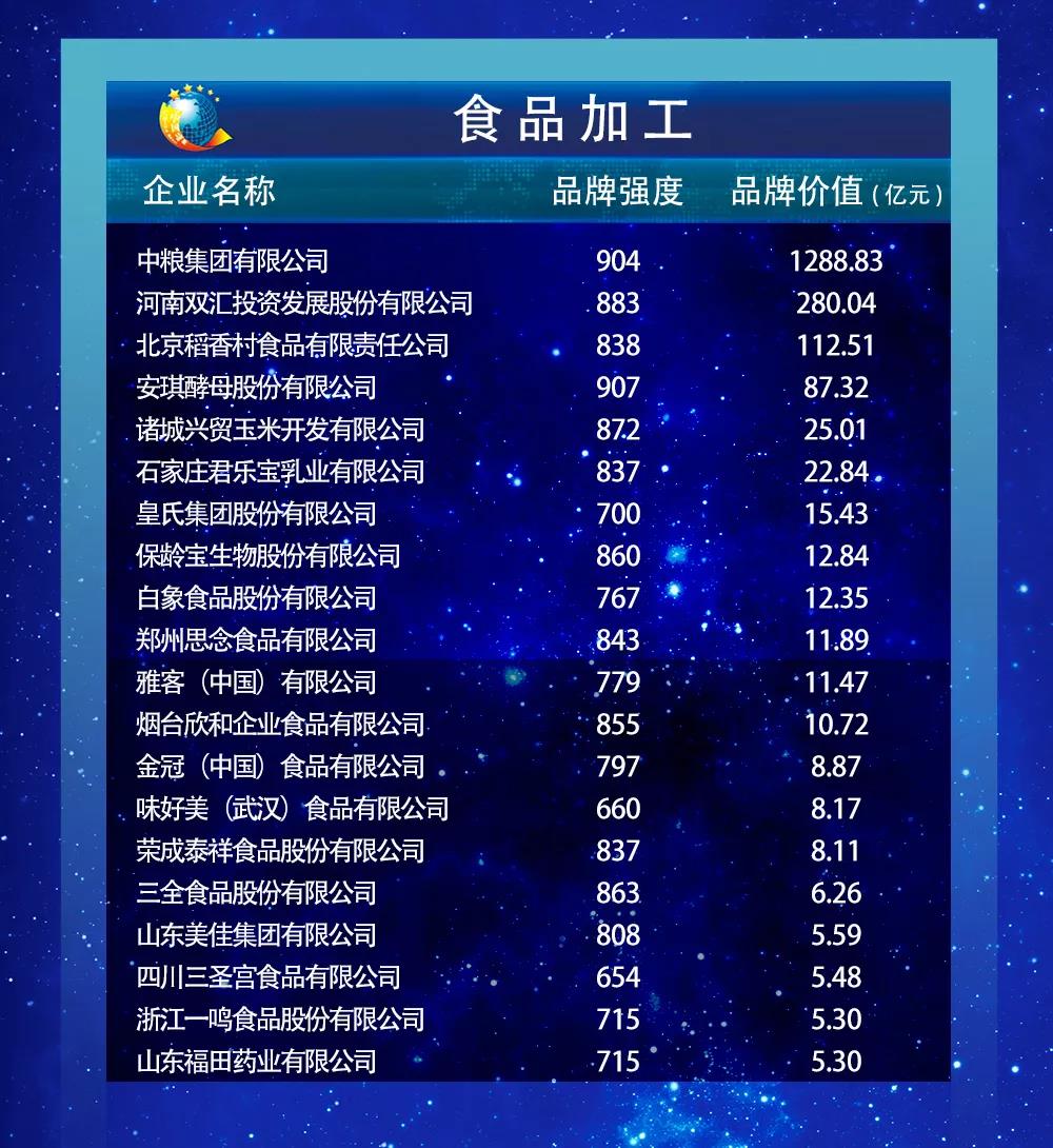 以下为2019中国品牌价值评价信息发布名单: