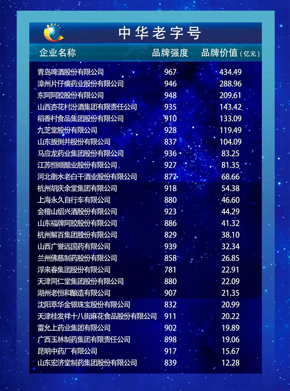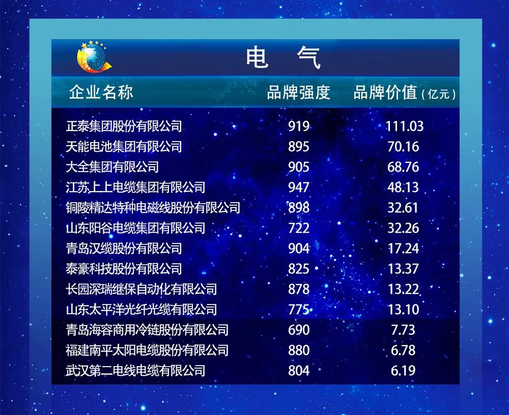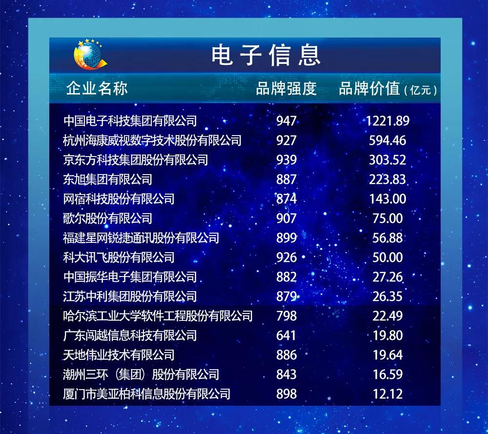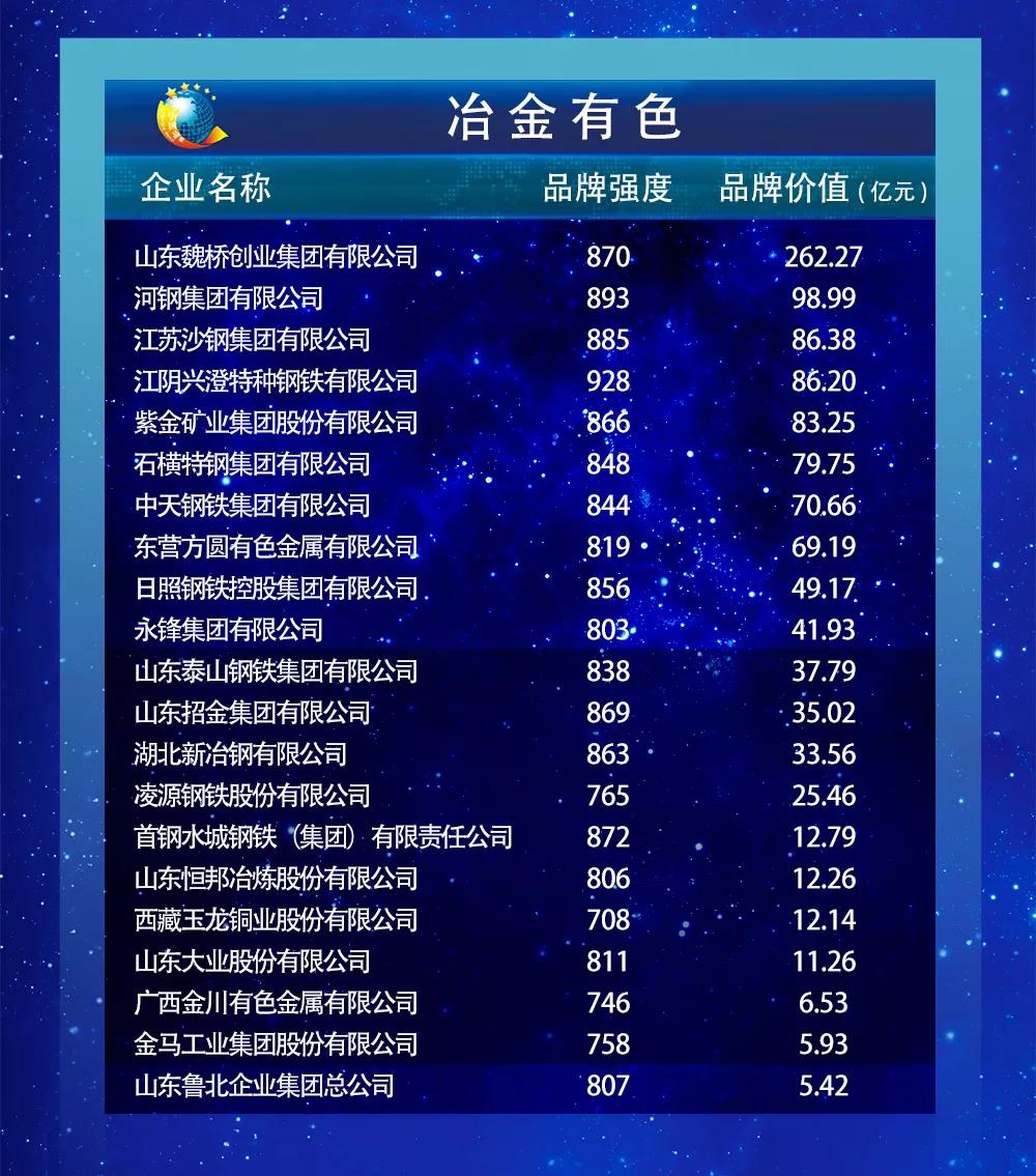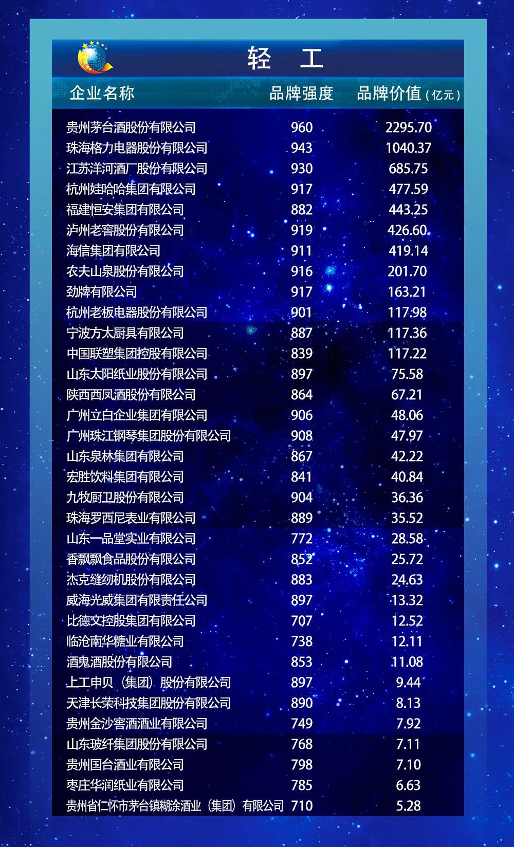 以下为2019中国品牌价值评价信息发布名单: