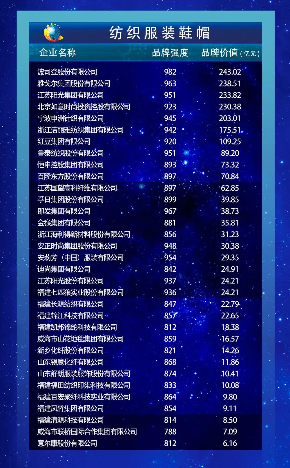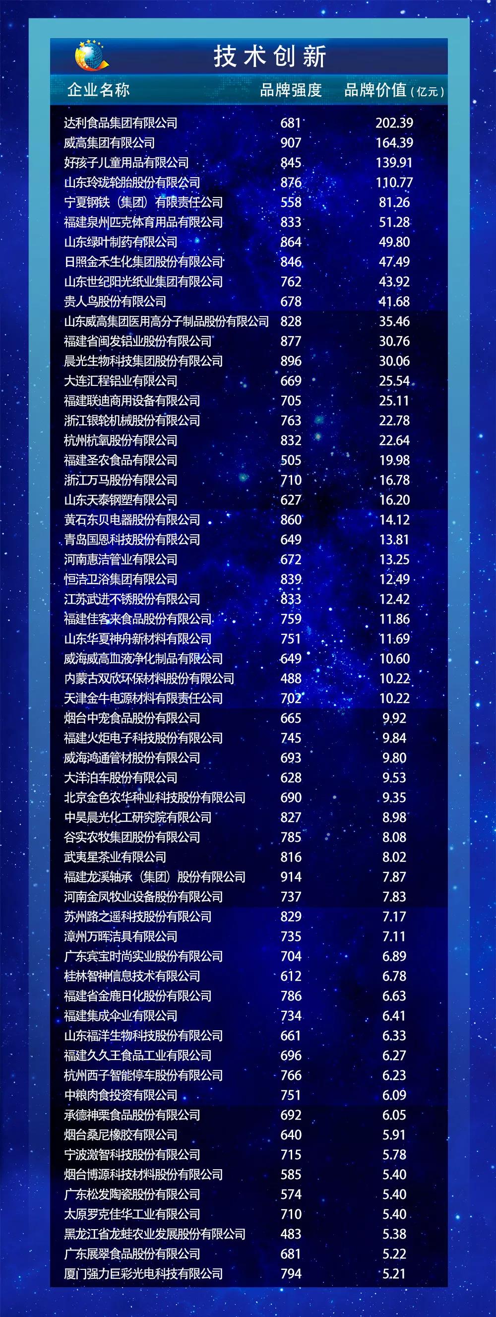 2019中国品牌价值评价信息发布名单